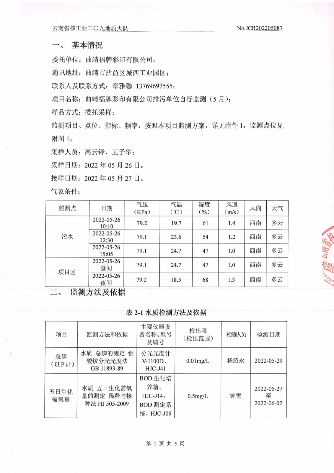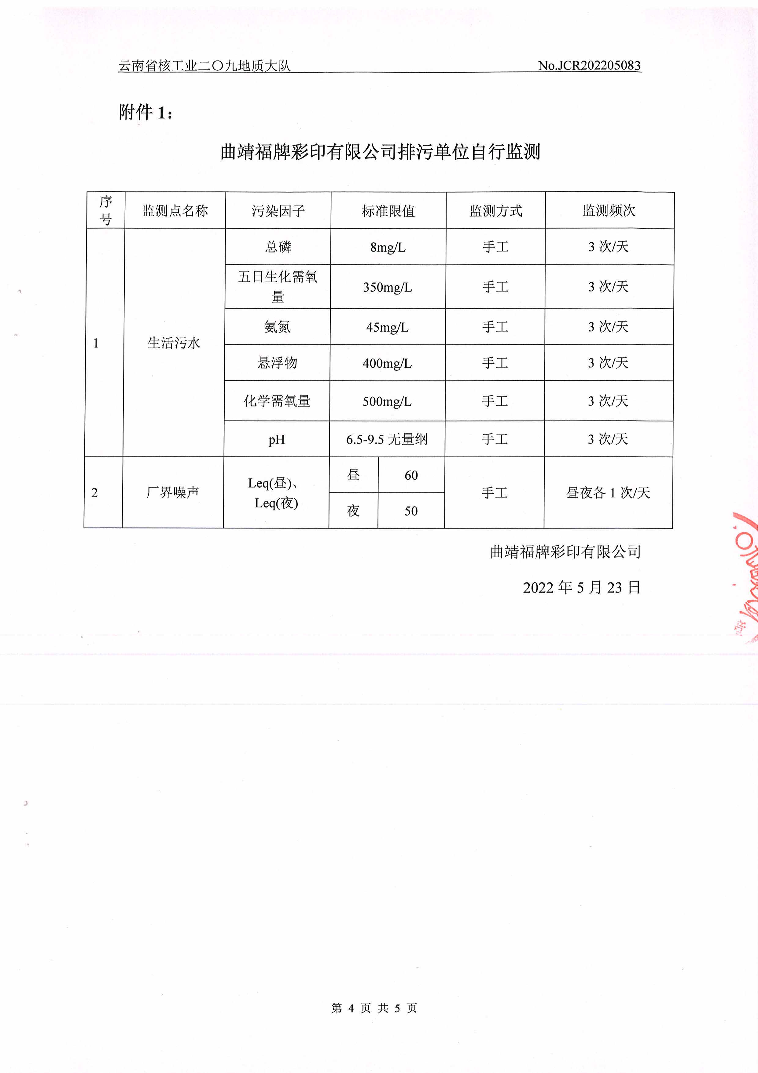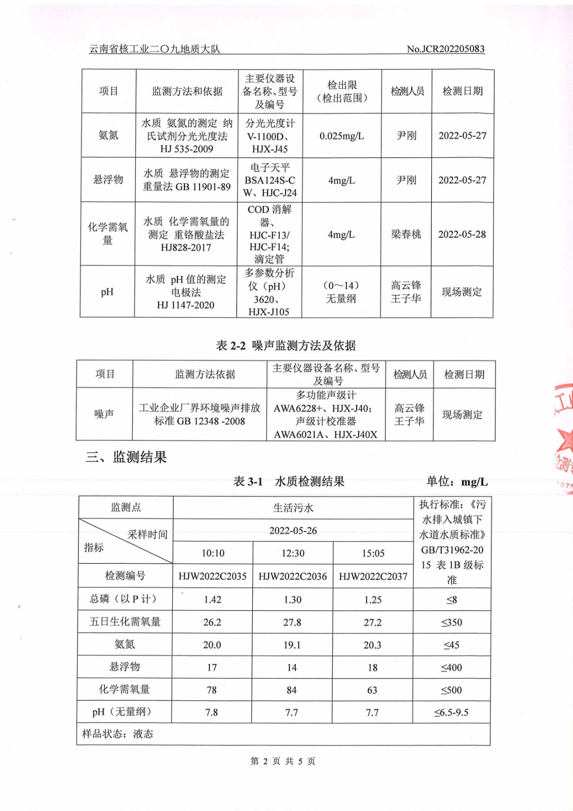 水質(zhì)、噪聲監(jiān)測報告